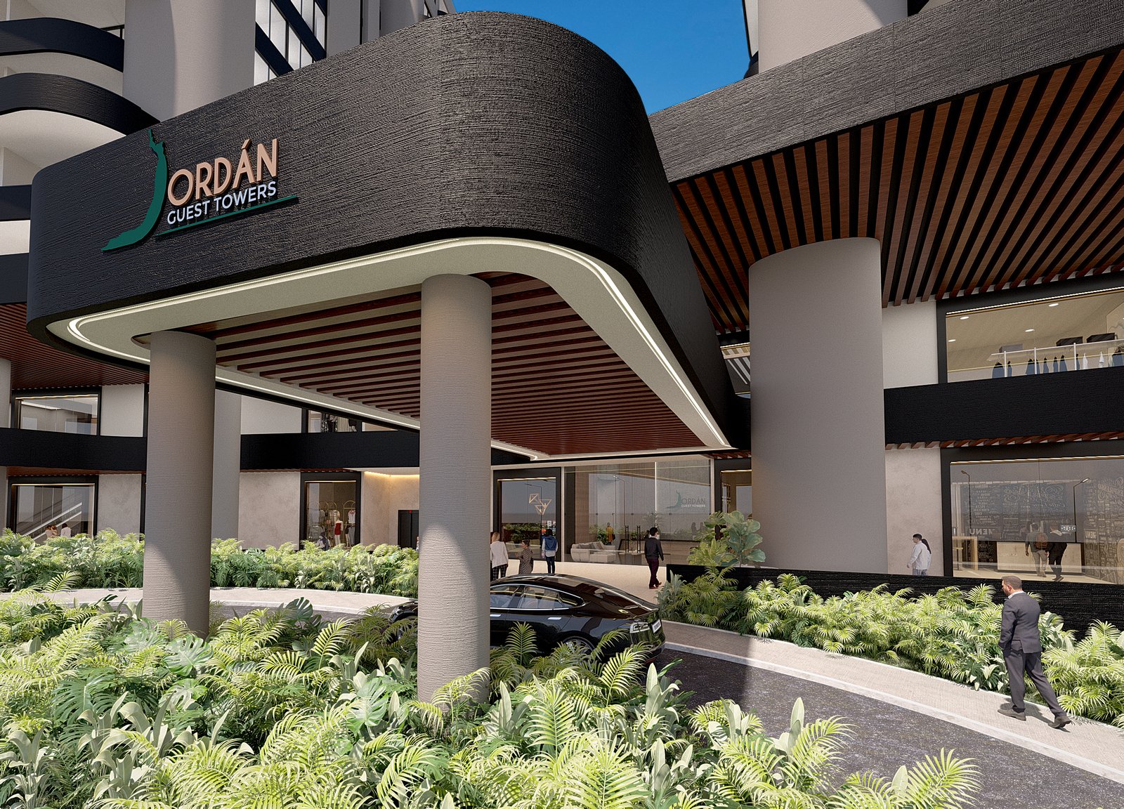 El proyecto Jordán Guest Towers se compone de 2 torres, 12 pisos por torre y cada piso con 13 unidades entre aparta suites de 1 y 2 ambientes por piso. El proyecto cuenta con un sistema constructivo sismo resistente bajo la norma del código NSR 10
